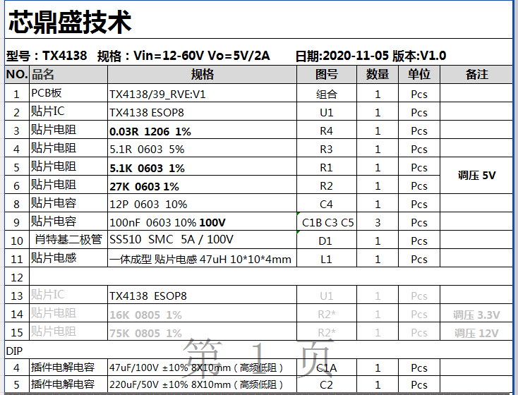 TX4138 是一款宽电压开关降压型DC-DC转换器。。。芯片3A连续输出电流,,具有优良的负载和线路调节。。