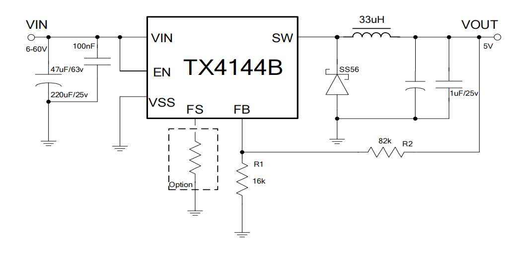 TX4144B在6-60V 宽输入电源范围内实现 1.5 A 最大输出电流,,,,并且具有出色的线