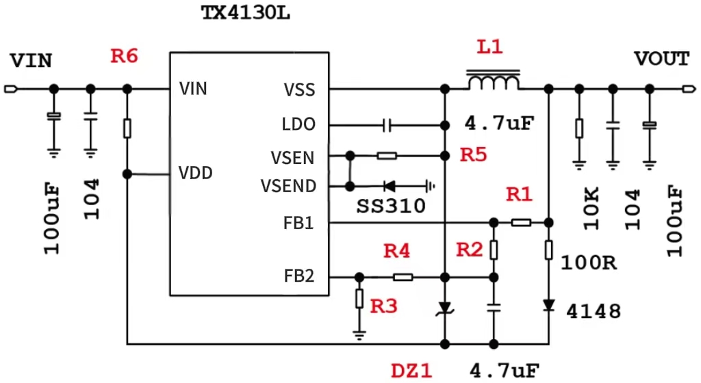 TX4130L 是一款宽电压输入的开关降压型 DC-DC 转换芯片