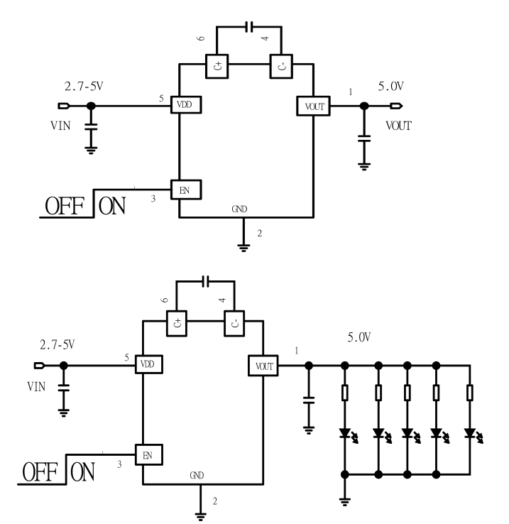 外部元件数量少( VIN 和 VOUT 有一个快速电容和两个小旁路电容)使得芯片非常适合电池供电的小型应用。。